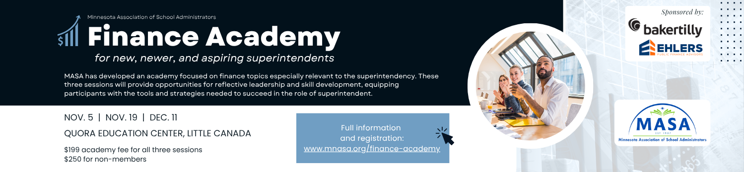 In response to feedback from our members and aspiring superintendents, MASA has developed an academy focused on finance topics especially relevant to the superintendency. These three sessions will provide opportunities for reflective leadership and skill development, equipping participants with the tools and strategies needed to succeed in the role of superintendent.