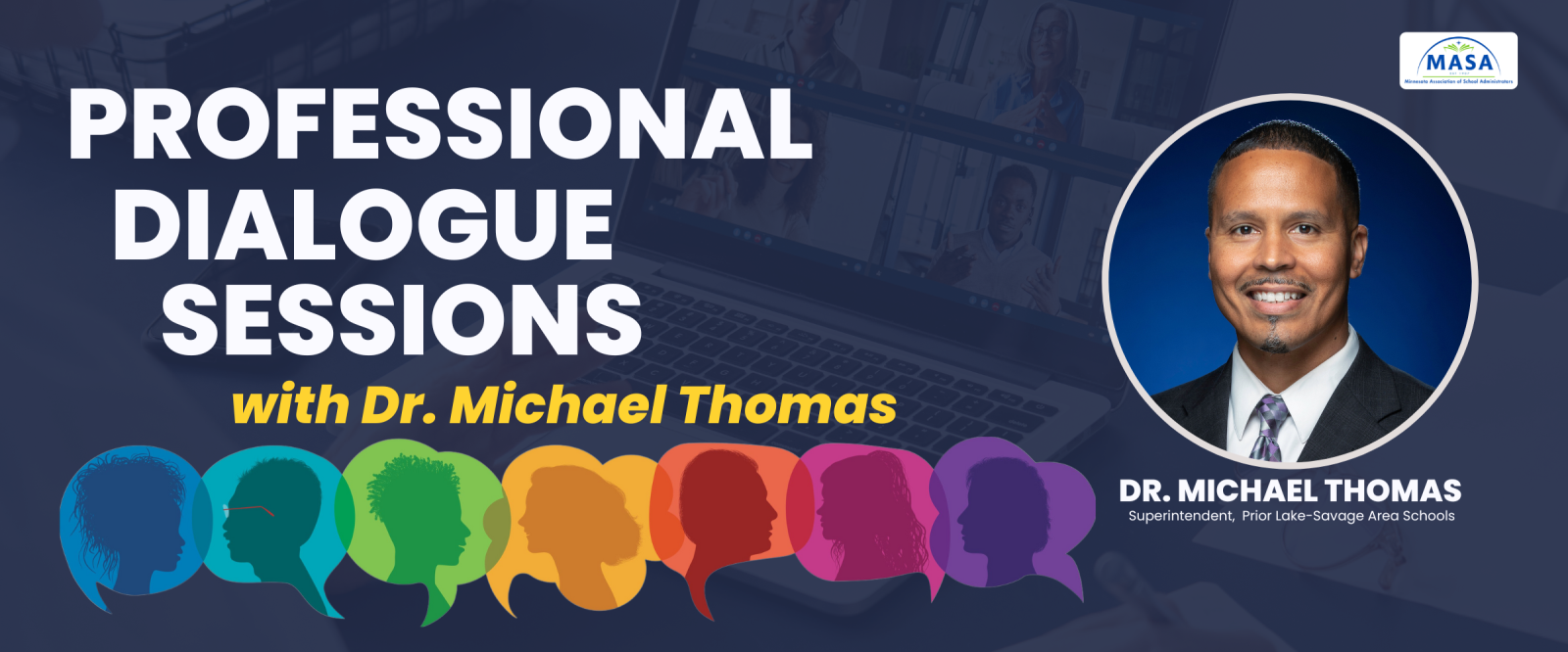 MASA Members are invited to join Dr. Michael Thomas, Superintendent of Prior Lake-Savage Area Schools, in a series of eight professional dialogue sessions exploring topics of interest to our currently practicing school administrators. While the topics may be general in nature, the group will specifically address issues of race and culture pertinent to the conversation.